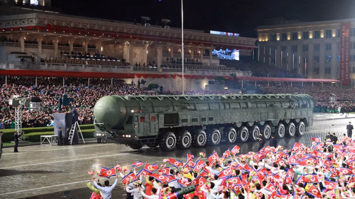 सैन्य परेड में, परमाणु-सशस्त्र उत्तर कोरिया ने अपनी सबसे उन्नत ह्वासोंग-20 अंतरमहाद्वीपीय बैलिस्टिक मिसाइल का प्रदर्शन किया, जिसे केसीएनए ने देश की “सबसे मजबूत परमाणु रणनीतिक हथियार प्रणाली” के रूप में वर्णित किया।