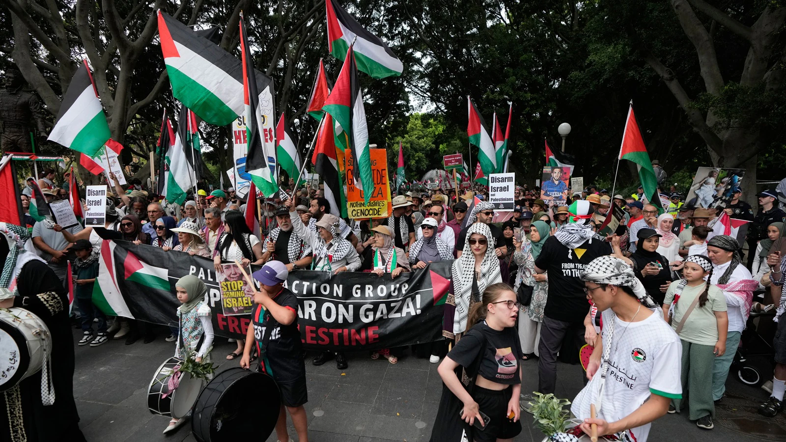 ऑस्ट्रेलियन ब्रॉडकास्टिंग कॉर्प के फुटेज में प्रदर्शनकारियों को दिखाया गया है, जिनमें से कई फिलिस्तीनी झंडे लेकर और केफियेह स्कार्फ पहने हुए, शहर की बंद सड़कों पर मार्च कर रहे हैं। पुलिस ने कहा कि कोई गिरफ्तारी नहीं हुई।