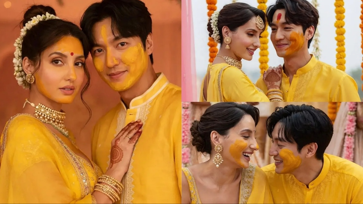 बॉलीवुड की डांसिंग क्वीन नोरा फतेही अपने खूबसूरत लुक और मूव्स के जरिए लोगों के दिलों पर छाई रहती हैं. लेकिन इस वो वक्त कोरियन एक्टर और सिंगर ली मिन की वजह से चर्चा में हैं. दरअसल दोनों की कुछ तस्वीरें सोशल मीडिया पर वायरल हो रही हैं. इन तस्वीरों में दोनों के चेहरों पर हल्दी लगी हुई है. ये तस्वीर देख यूजर्स अब एक्ट्रेस से तरह-तरह के सवाल कर रहे हैं.